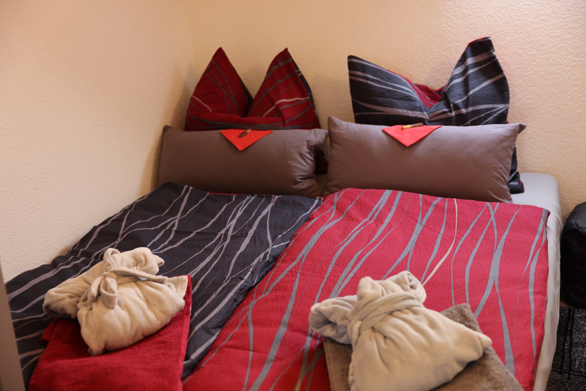 Bettwäsche (gemachte Betten) und ausreichende Handtücher sowie Bademäntel stehen zur Nutzung zur Verfügung.