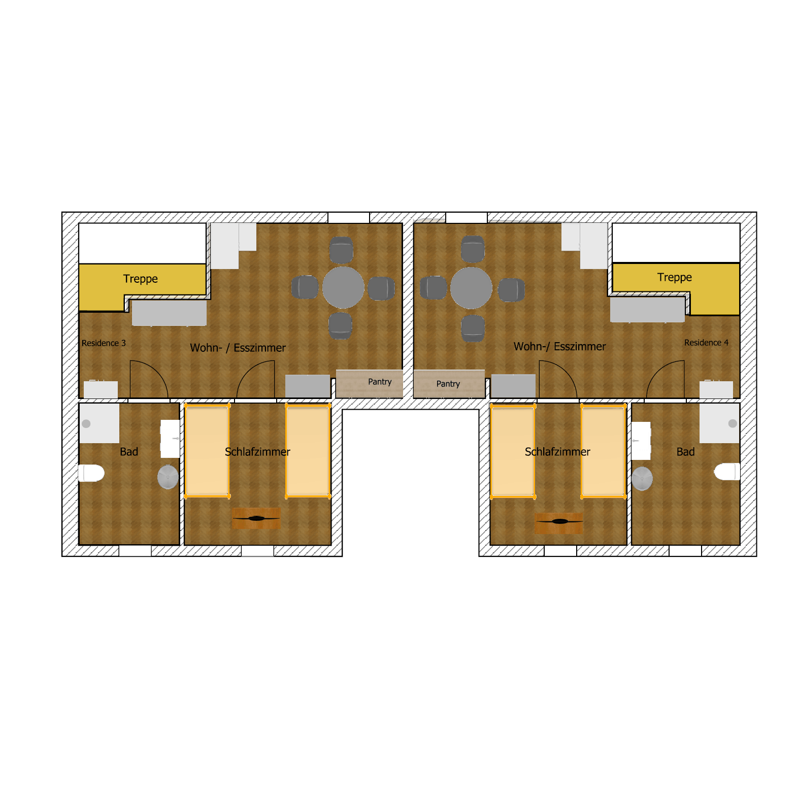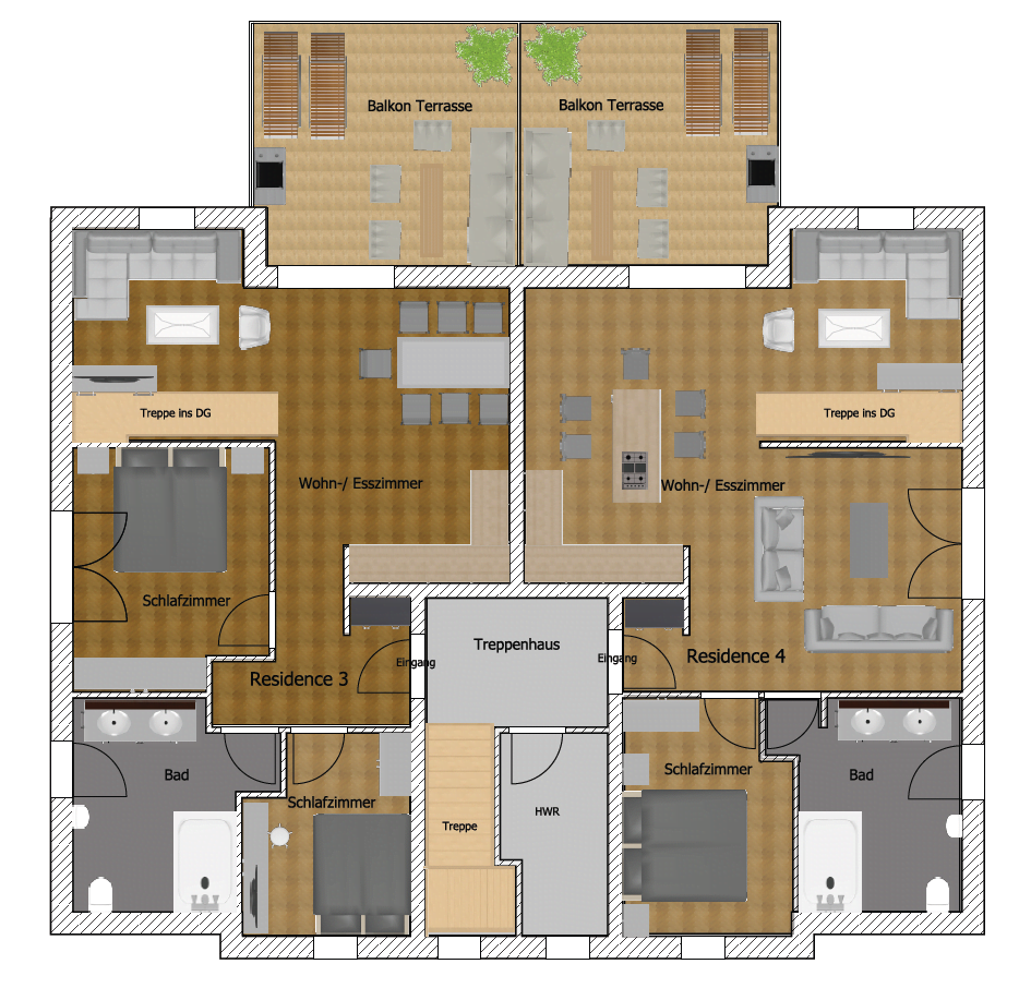 Hier befindet sich ein 2. Bad, das 3. Schlafzimmer, eine Pantry Küche und ein weiterer Wohn- Essbereich. Das Dachgeschoss bietet sich auch an als eigenständige Einheit von Ehepaaren / Freunden / Bekannten genutzt zu werden!